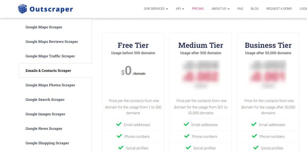 Visite nuestra página de precios para conocer los detalles de los precios de nuestro servicio Emails & Contacts Scraper.