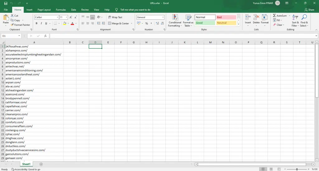 Este archivo de resultados de la tarea de muestra puede revisarse aquí: Empresas HVAC_XLSX