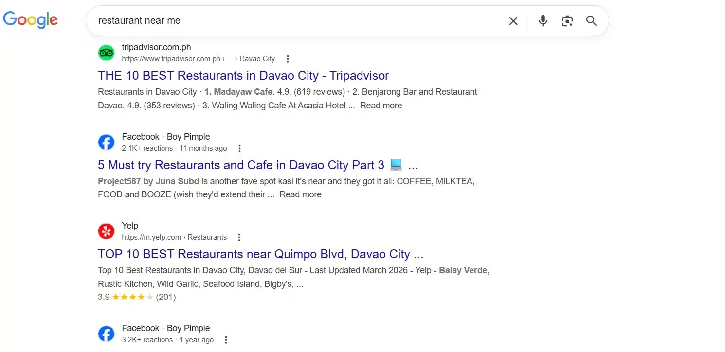 Google Maps is a different product entirely. It lives at maps.google.com and inside the Google Maps app on your phone. It’s a mapping and navigation platform, but for businesses, it’s also a discovery engine. When someone searches “coffee shop near me” on Maps, they get a list of nearby businesses with pins on a map, not a list of websites.