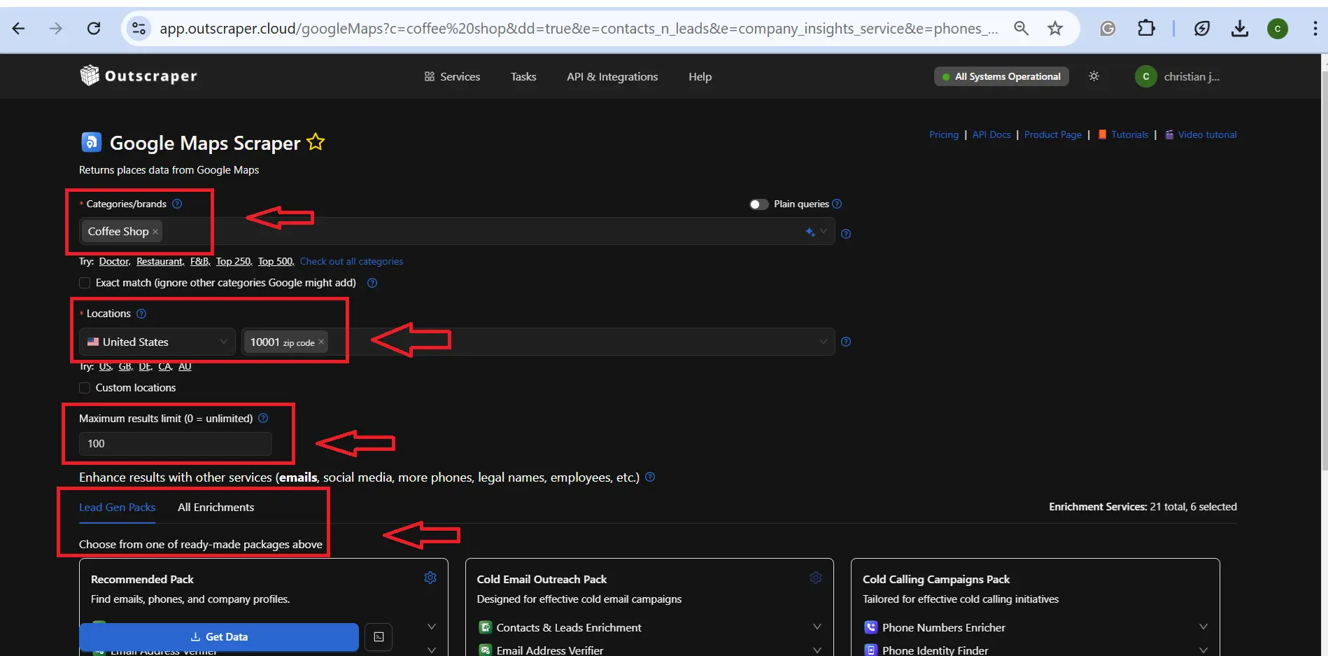 Configuring filters helps to narrow down the desired categories/brands in a specific location. Users may add a maximum limit that would reduce the cost of data extraction. Also, additional enrichments are highly recommended, which can be modified depending on the desired outcome of data extraction.
