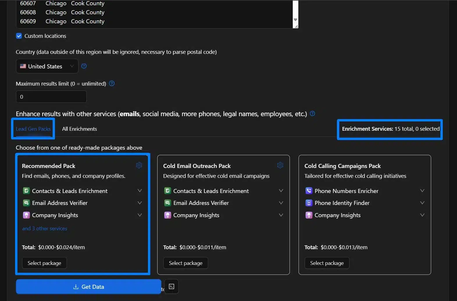 If you want more specific data, especially for lead generation, we recommend adding some enrichment, like the lead gen packs, which will give you emails, phones, and company profiles. You can also choose a specific enrichment based on our list of 15 enrichment tools.