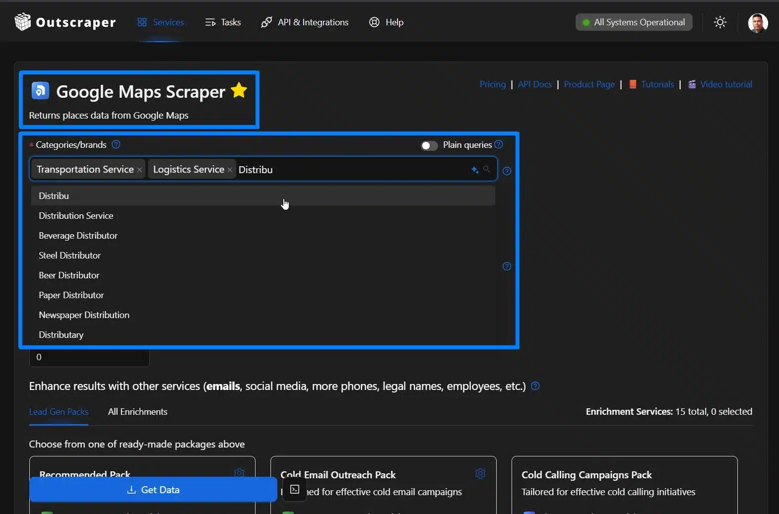 Building a list is just the first step. Once you have your thousands of data, in this example we have 17,00 logistic firms, you need to know who to call. You can use a separate enrichment service, but you can also use Outscraper’s built-in enrichment as part of your configuration. This keeps everything in one place and removes the need to pay for multiple tools.