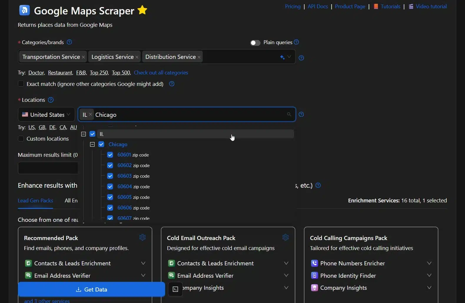 One key feature to look for is the “Drop Duplicates” or duplicate-filtering setting. Many ZIP codes in Chicago overlap, or share boundary areas, so the same business might appear in three different searches. Without this filter, your lists fill up with repeats, and your enrichment costs go up.